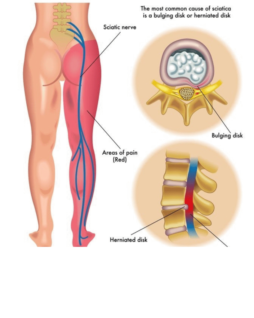 Sciatica occurs when the sciatic nerve is compressed or irritated. The most common causes include: